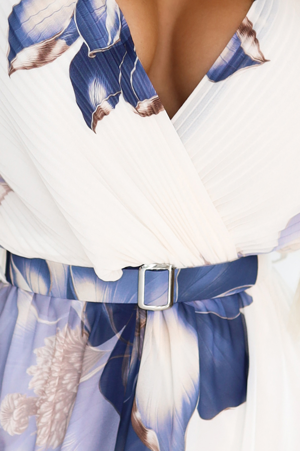 601-1 Vzdušné midi šaty s zavinovacím výstřihem a velkým květinovým vzorem - odstíny modré