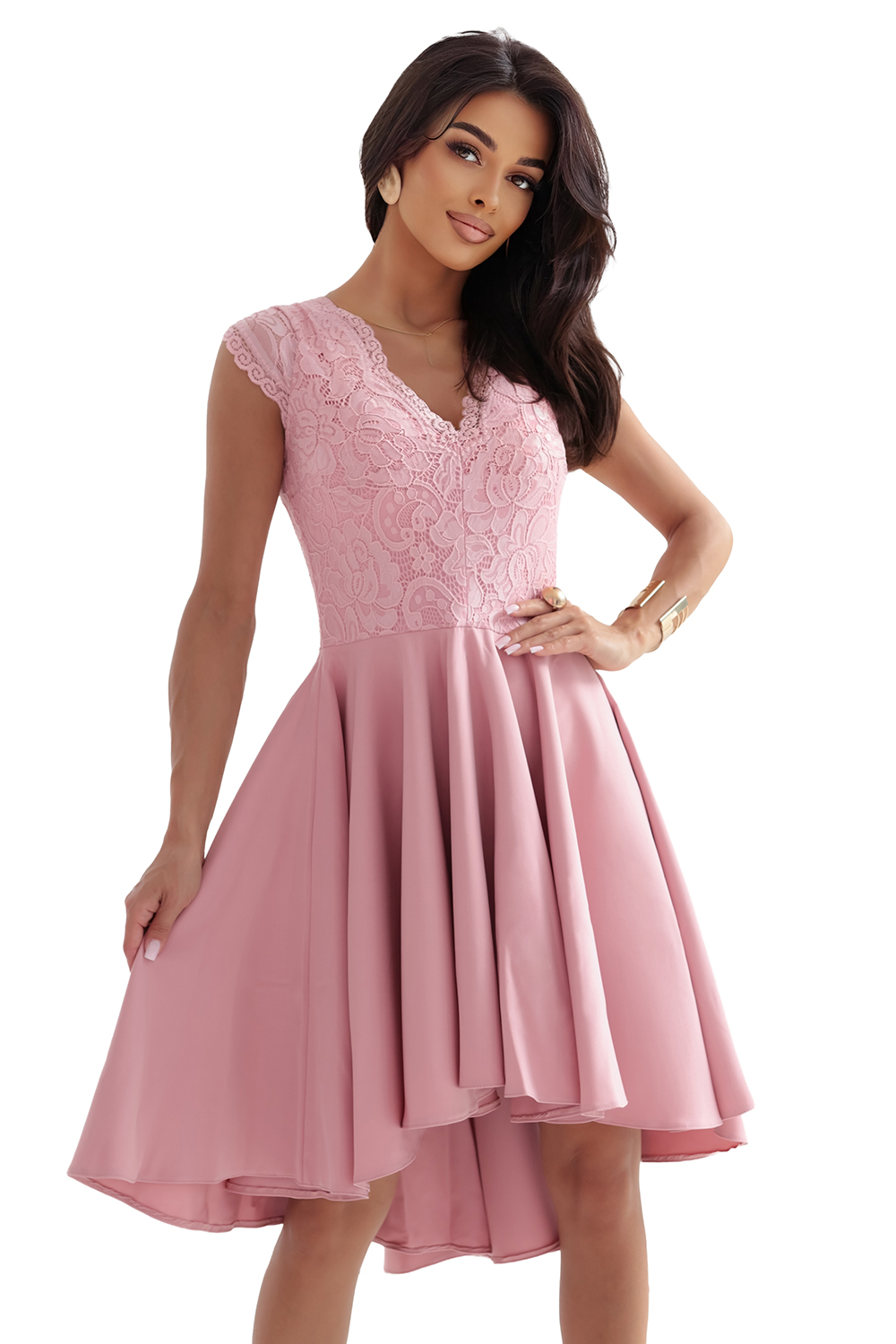 Růžové šaty s krajkovým vrchem a rozšířeným spodkem – Numoco